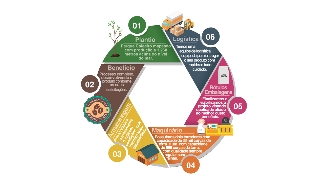 O GRUPO AGRO FONTE ALTA com grande capacidade produtiva e sempre mantendo a alta qualidade desenvolve marcas próprias para empresas interessadas em comercializar cafés especiais elaborando blends exclusivos adequados a cada cliente.